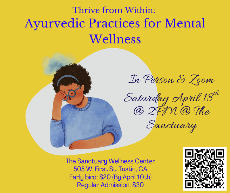 Join us for a workshop on practical Ayurvedic tips for mental wellness! Discover simple, holistic ways to manage stress and improve emotional balance. Learn about your mind-body type (dosha), calming daily routines, mindful eating, and techniques like breathing exercises, yoga, and meditation.